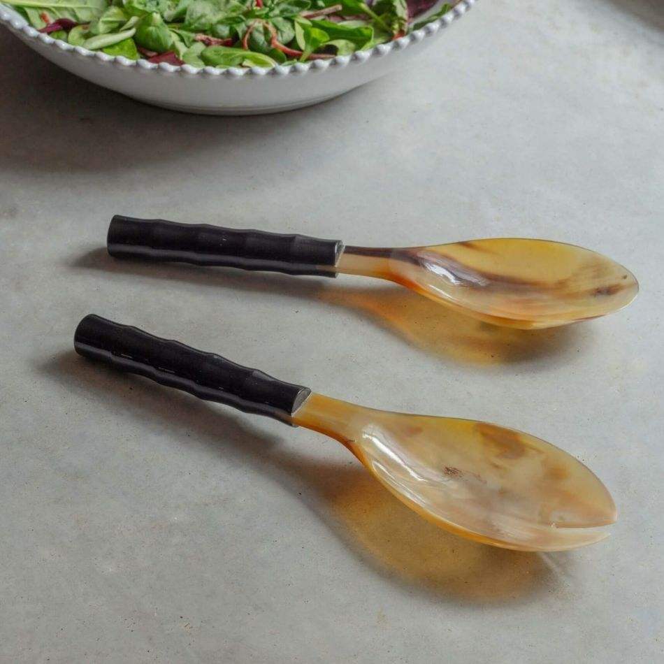 Cuillère et fourchette à salade en résine faite à la main par un designer, avec tête en corne, couverts de table avec tête en corne, style de salle à manger fait à la main