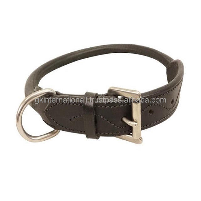 Collier de chien en cuir véritable cousu fantaisie rond roulé fait à la main pour tous les animaux de compagnie de taille avec matériel solide en nickel antirouille