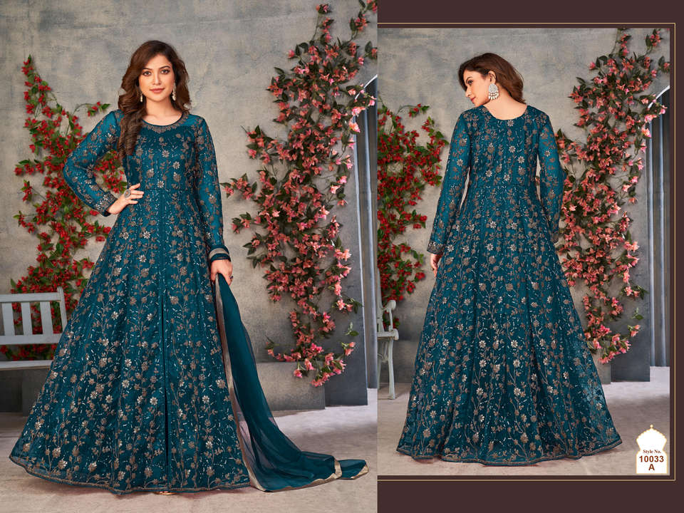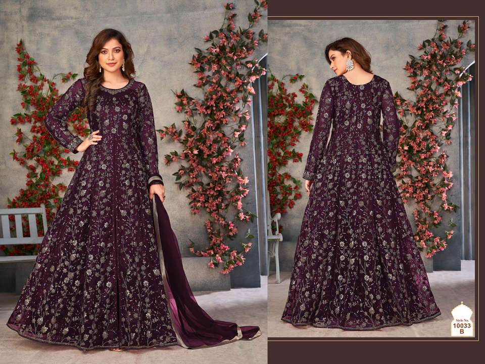 Ensemble de costume Anarkali en tissu de filet brodé lourd de créateur pour mariage, fête et tenue de mariée, fournisseur en gros