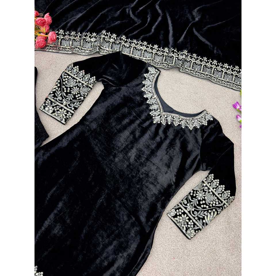 Ensemble de vêtements indiens et pakistanais pour les fêtes, comprenant un haut, un sharara et un dupatta, avec de lourds broderies et des sequins