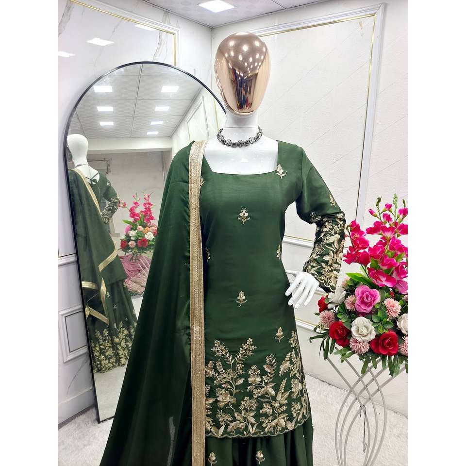 Ensemble haut, sarara et dupatta brodés lourdement avec des sequins pour robes de cérémonie