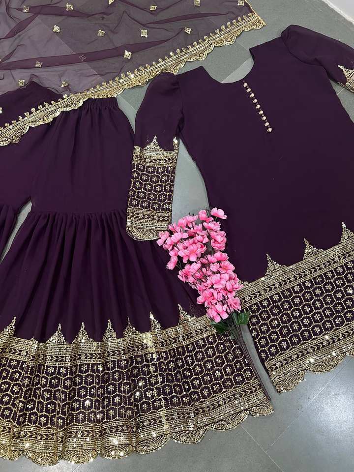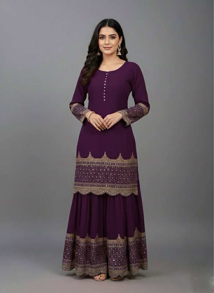 Ensemble Sharara de créateur en Faux Georgette épais brodé avec Dupatta en résille, pour les occasions festives et de soirée