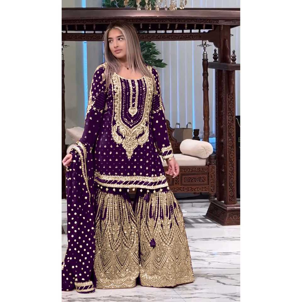 Ensemble haut en faux georgette lourd de créateur, pantalon palazzo et dupatta, robes de soirée avec un look de soirée