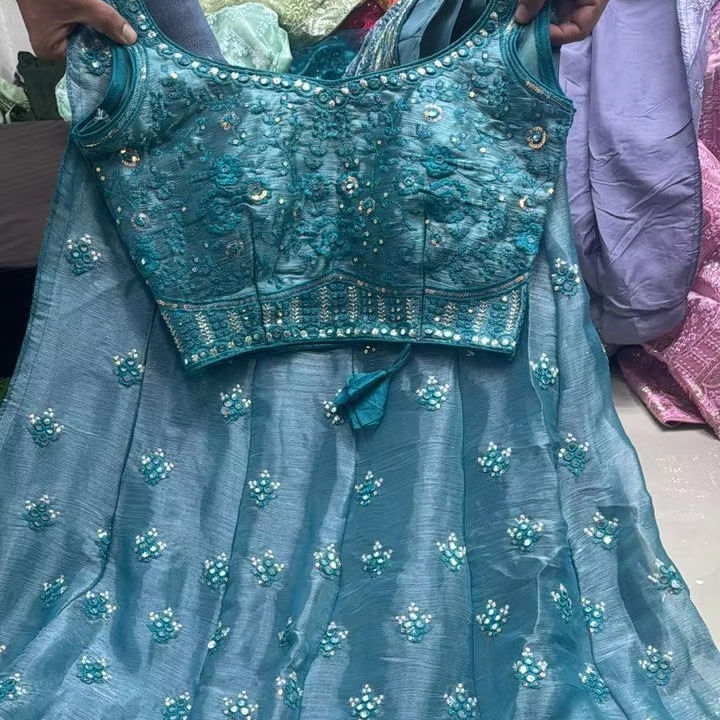 Ensemble de 3 mètres de haut cousu Jarkan Work Lehenga Choli pour les fêtes d'été et d'hiver