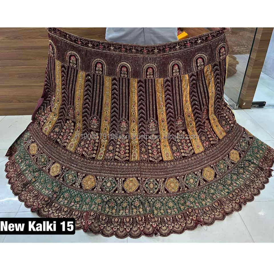 11000 VELOURS LEHENGA LOURD JARKAN TRAVAIL COUPE PÂTE TRAVAIL