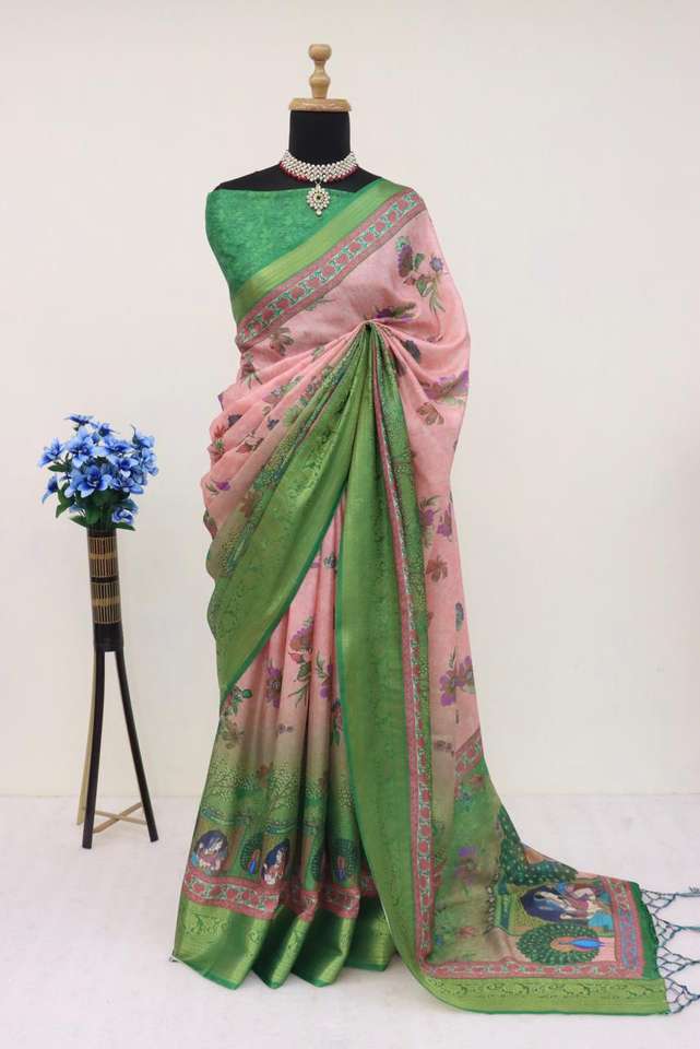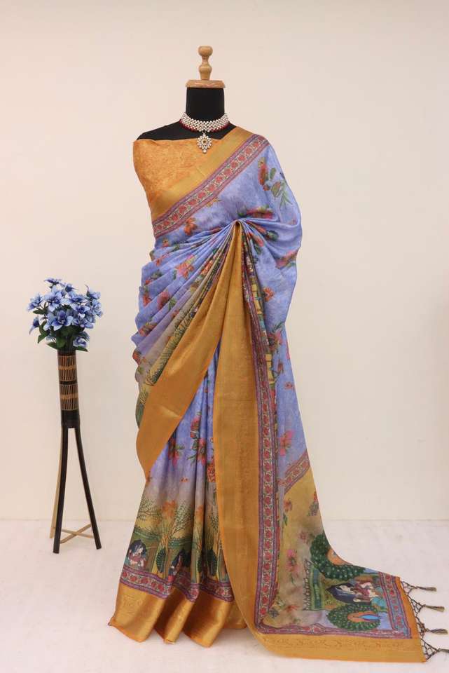 Work:DIGITAL PRINT SAREE WITH DIGITAL PRINT BLOUSE MATCHING TO SAREE