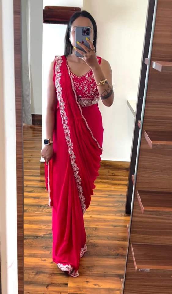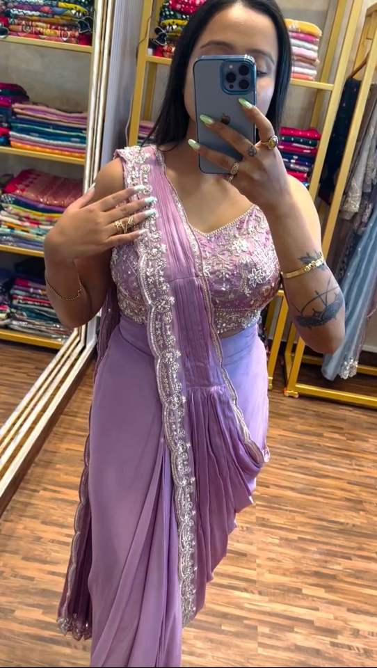 Travailler:SAREE IMPRIMÉ NUMÉRIQUE AVEC BLUSE IMPRIMÉ NUMÉRIQUE ASSORTIE AU SAREE