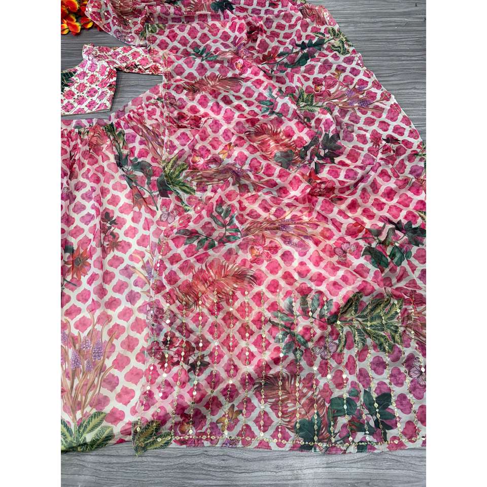 Lehenga Choli de soirée rouge Heera Creation avec un magnifique imprimé floral, taille 2XL, 1 kg