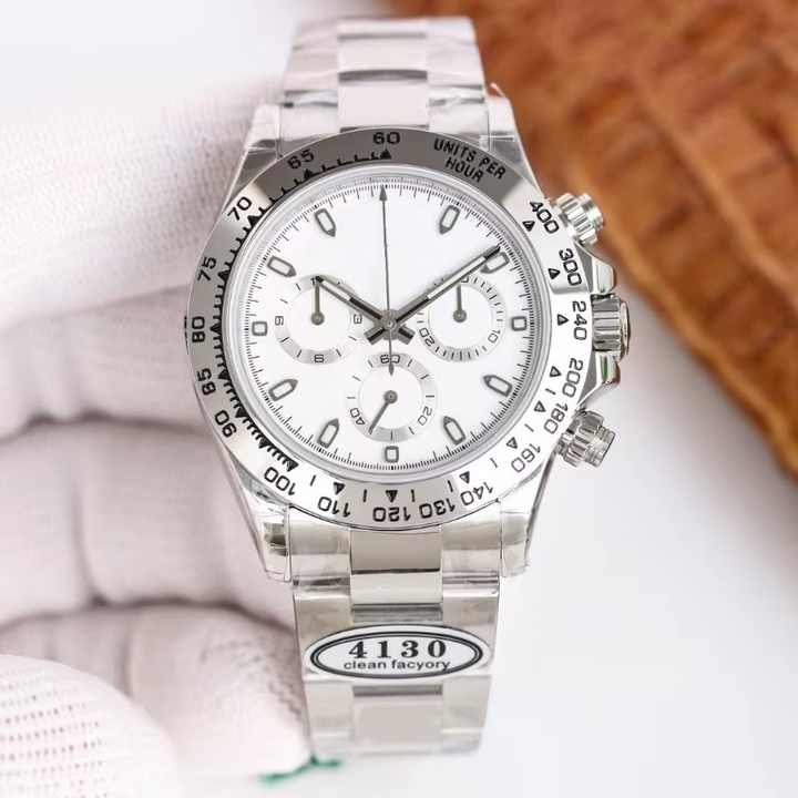 Designer de haute qualité mécanique 7750 4130 4131 mouvement chronographe montres-bracelets verre saphir montre automatique