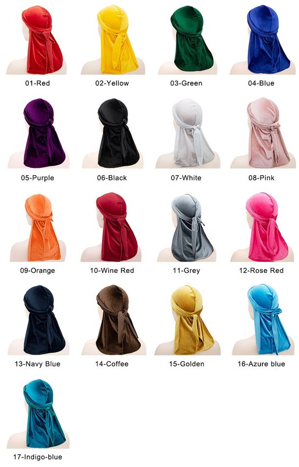Chapeaux à capuche en velours Durag coloré Hip Pop pour homme