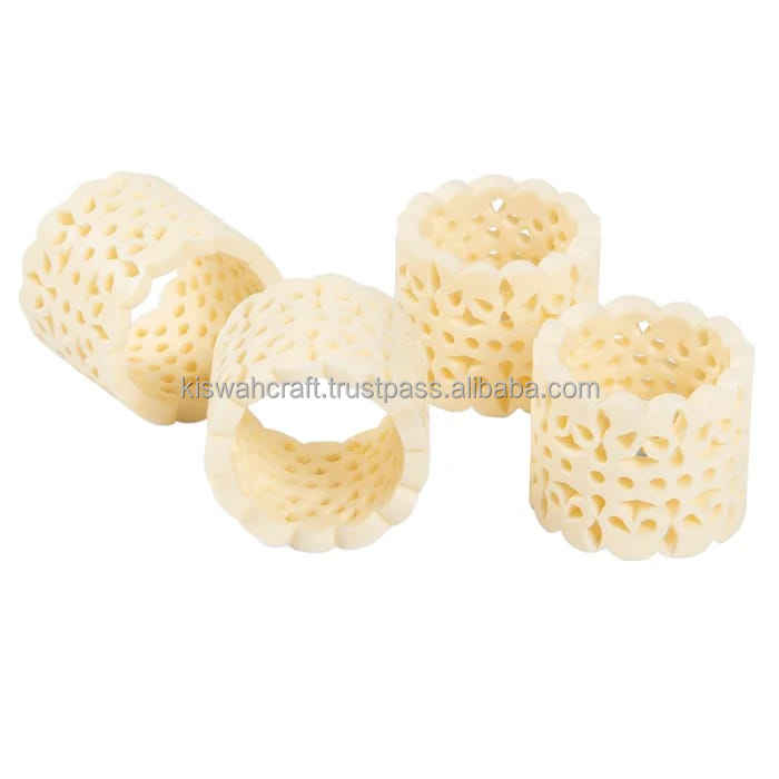 Lot de 4 ronds de serviette en marbre blanc cassé naturel de la collection Designer Home Porte-serviettes élégant pour la décoration de la fête et de la table à manger