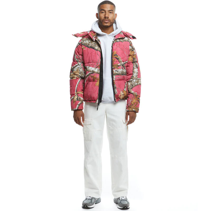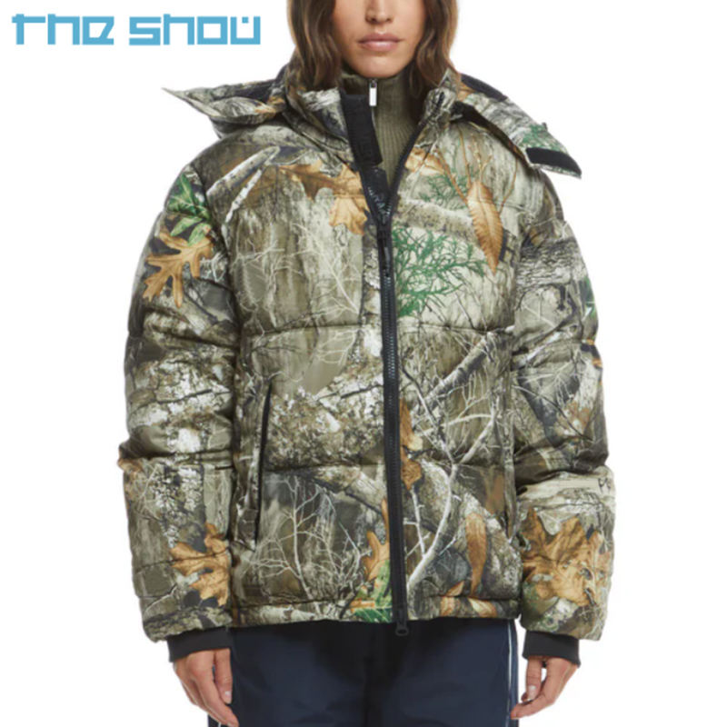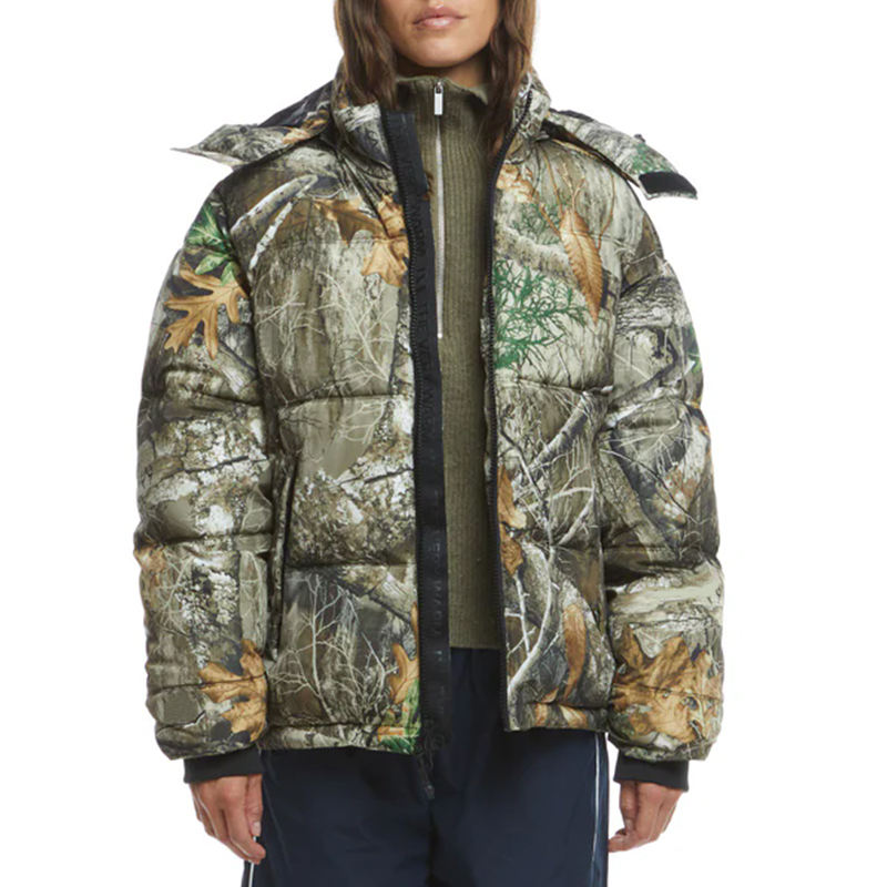 Blouson Bomber à Capuche Designer pour Homme, Personnalisé, Épais et Lourd, Imprimé Intégral Camouflage Real Tree, Doudoune Rembourrée
