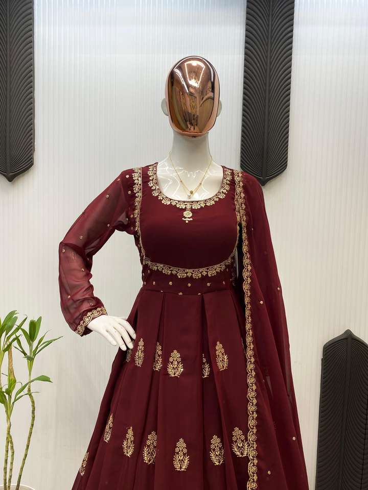 Créateur de mode indien, pionnier des tendances, dernière création exclusive, robe rouge époustouflante, magnifique tenue nuptiale, tenue de soirée d'un look riche.