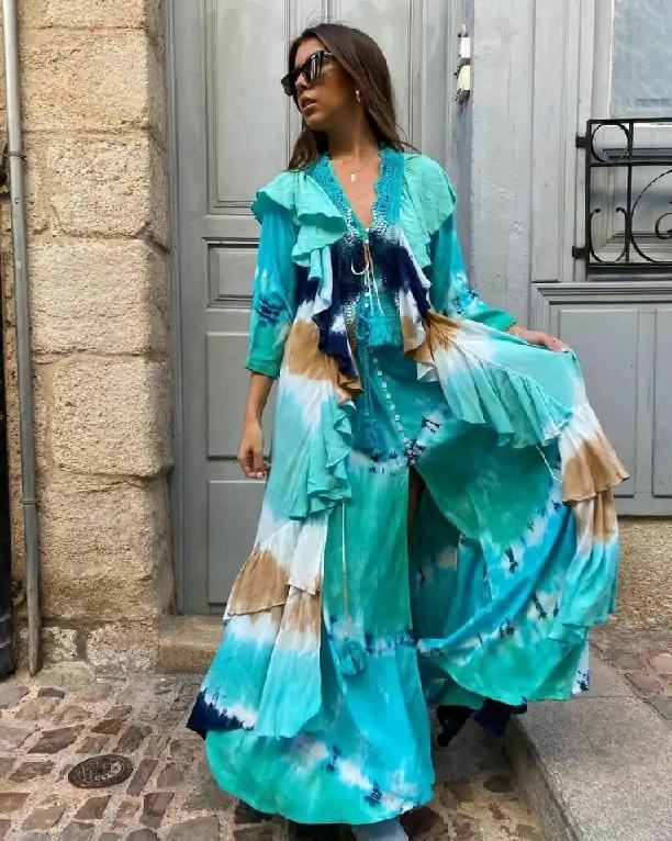 Robe de créateur indienne faite à la main à manches longues et teintes multiples avec coupe moyenne pour robe de soirée d'été