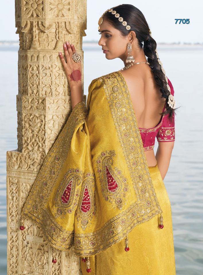 Saree indien en soie pure crêpe souple Vêtements de mariage traditionnels Travail de fantaisie Design Style pakistanais Vêtements de mariage élégants