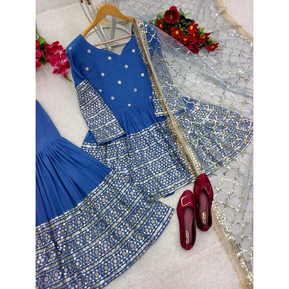 Ensemble de soirée Designer Kediya-Sarara XL en tissu mousseline avec hauts à manches trois-quarts et dupatta fantaisie
