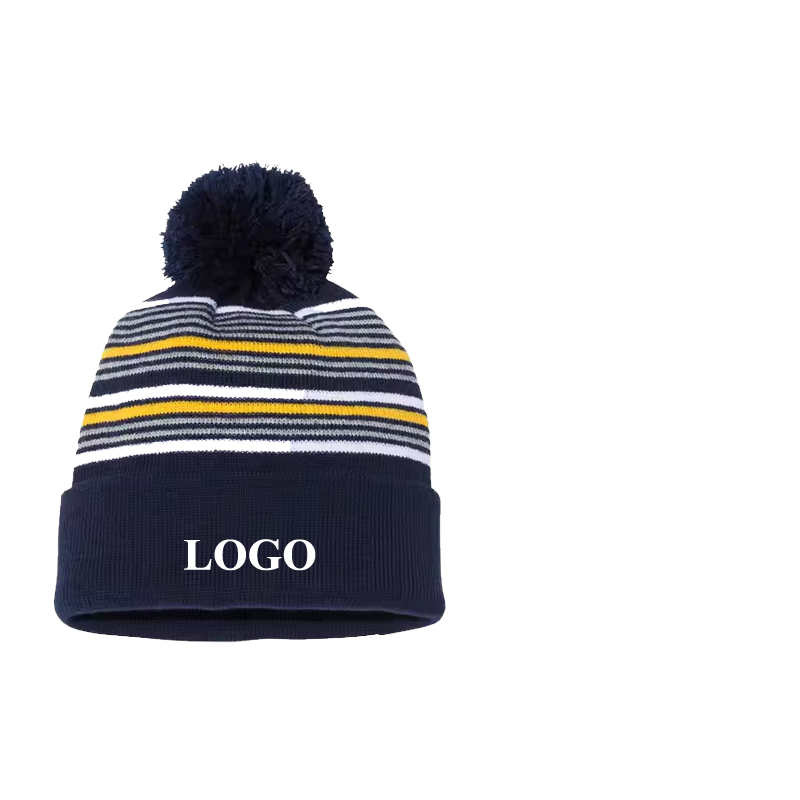Bonnets d'hiver en tricot de designer avec pompon sport, tricot côtelé, bonnet personnalisé avec logo brodé