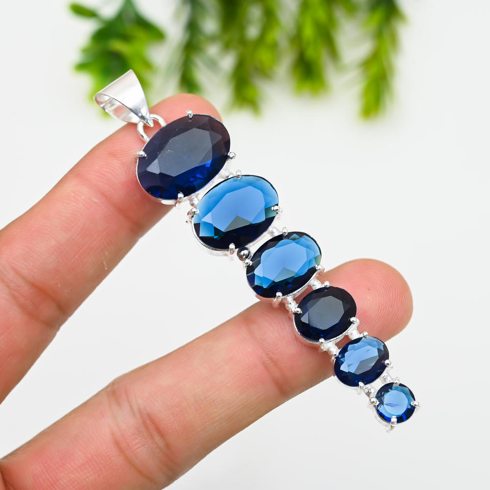 Saphir bleu pendentif fait main argent plaqué lien chaîne fiançailles mariage fête mode bijoux cadeau pour les femmes