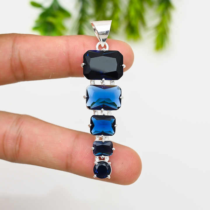 Collier pendentif en argent sterling facetté avec topaze bleue de Londres carrée de 4,0 mm à 10,0 mm, style bohème, pour fiançailles, mariage, anniversaire