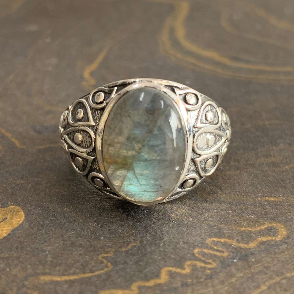 Bague fine en labradorite de créateur, 7,4 grammes