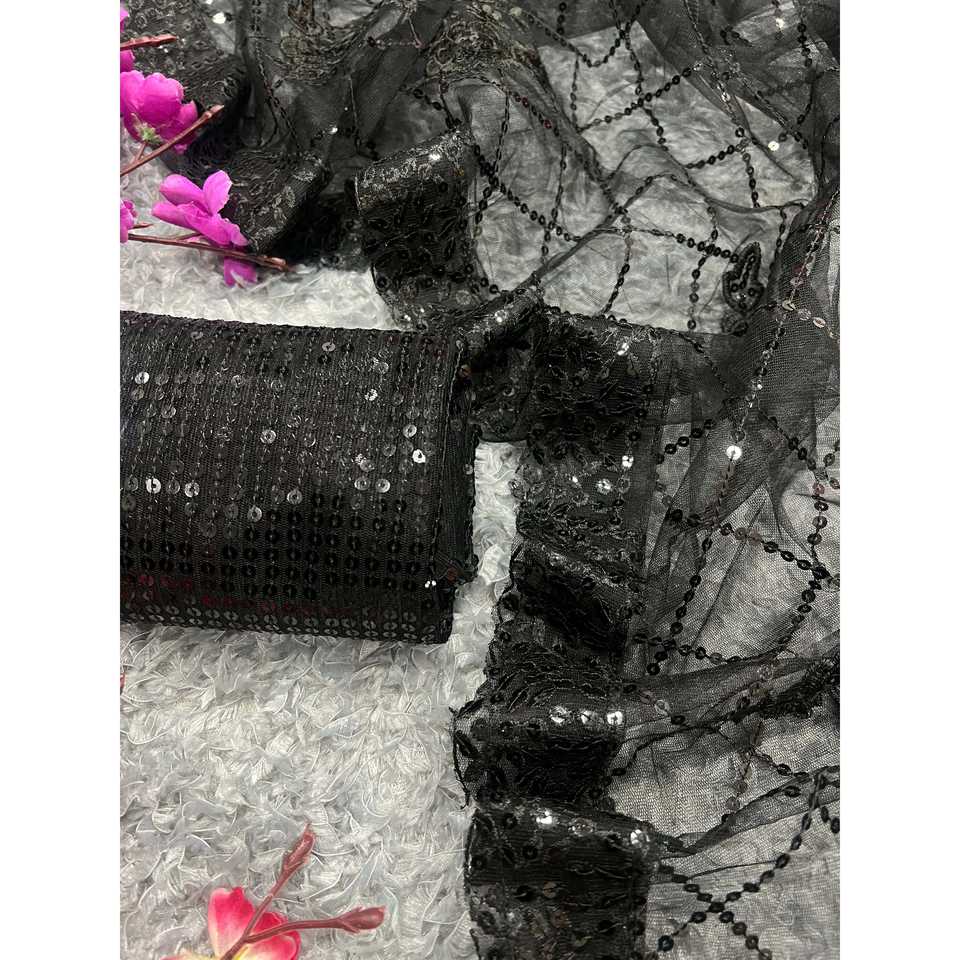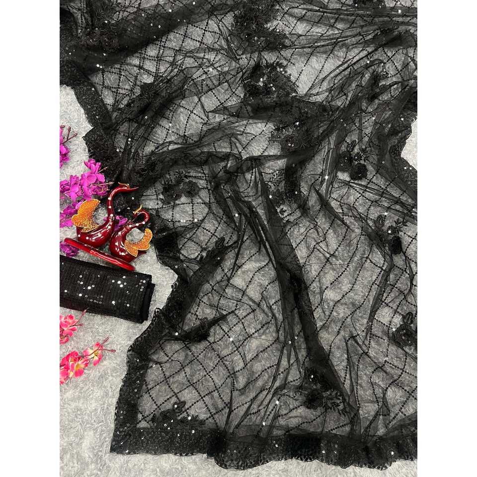 Saree de bordure en dentelle de créateur avec broderie séquentielle pour l'habillage de carrière