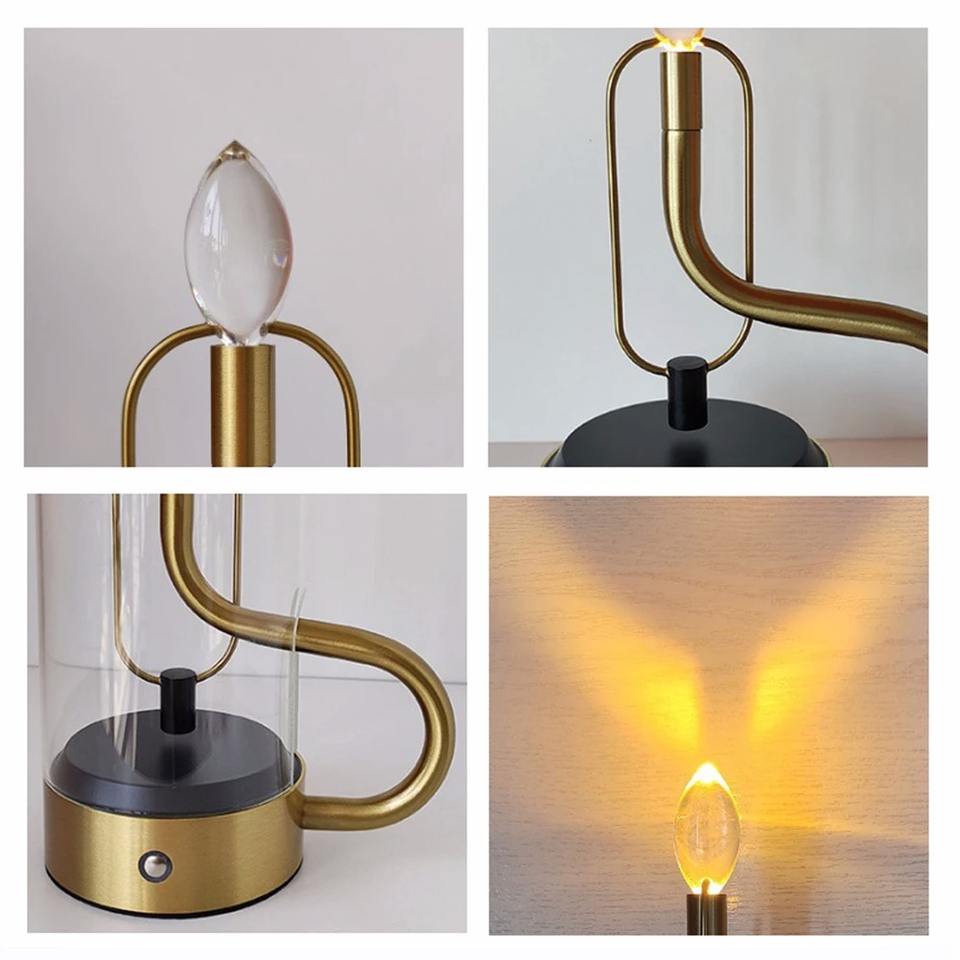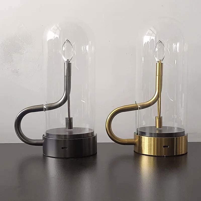 Lampe de table LED design en forme de goutte d'eau avec effet flamme de bougie, rechargeable, suspendue, décorative en verre pour chambre à coucher