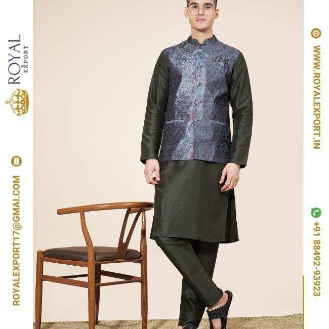 Dernier col rond Kurta de créateur avec veste Jacquard Ensemble pyjama Kurta pour hommes Vente en gros Bon marché Surat