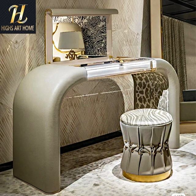 Coiffeuse design légère de luxe pour chambre à coucher rangement de bijoux table de maquillage en cuir personnalisation de meubles pour villa