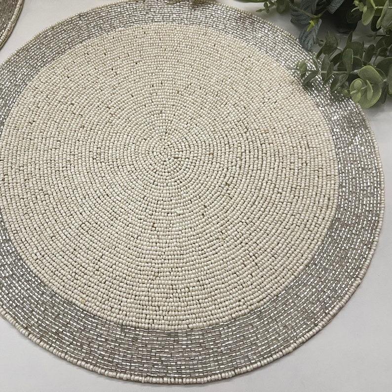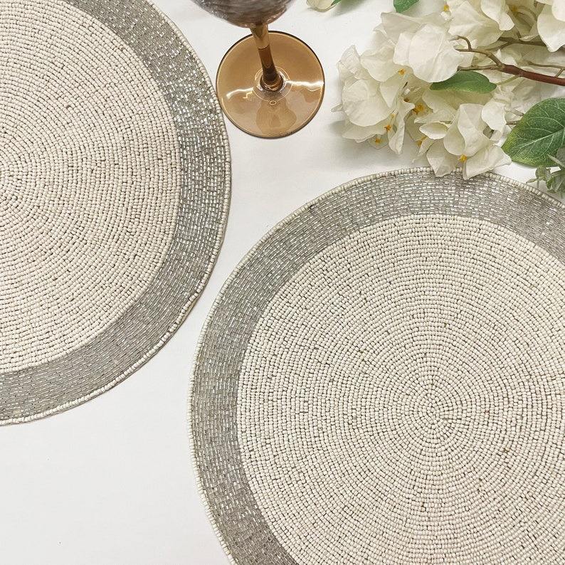 Napperons de table de luxe brodés et perlés de créateur - Écologiques, durables et personnalisables pour les mariages