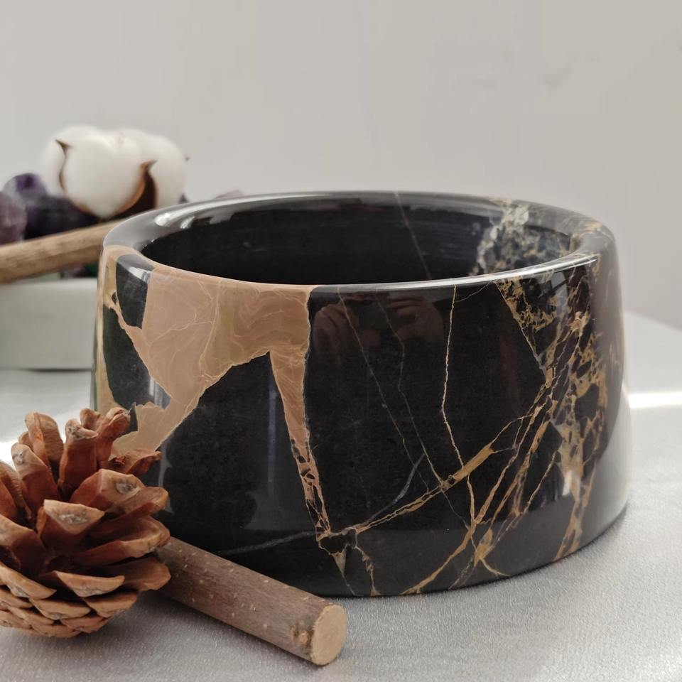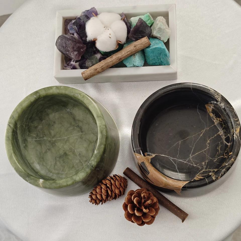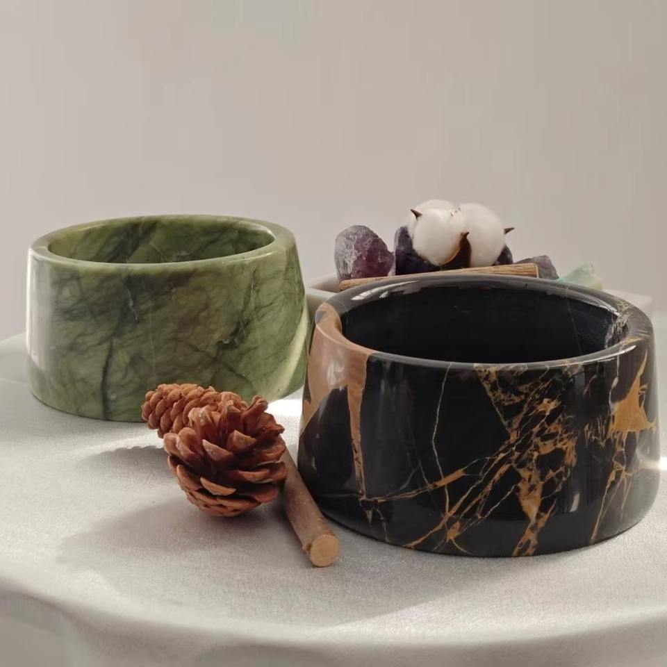Bol décoratif en marbre de créateur Pièce maîtresse en pierre artisanale Plateau de présentation moderne de luxe pour la maison, la cuisine ou le bureau