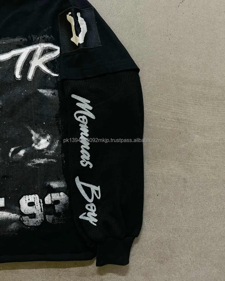 T-shirt à manches longues double couche de grande taille pour hommes, sérigraphie thermique personnalisée, collection du fabricant
