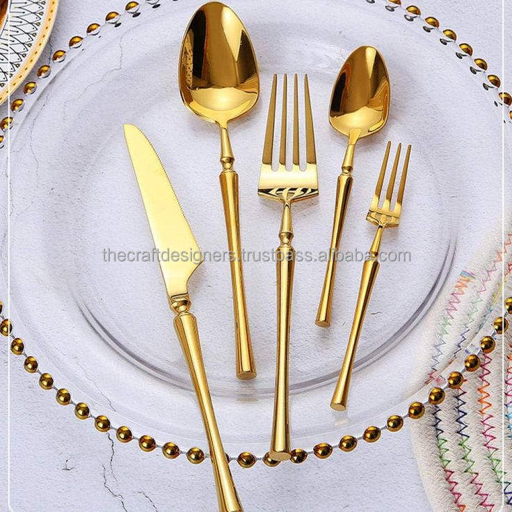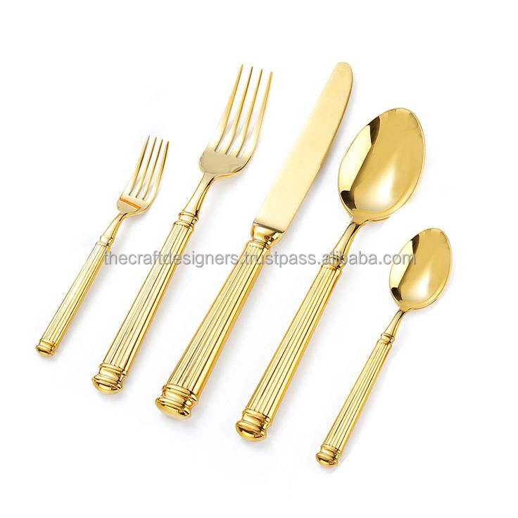 Ensemble de couverts en métal de designer avec finition polie brillante offrant un aspect haut de gamme pour une présentation de table élégante