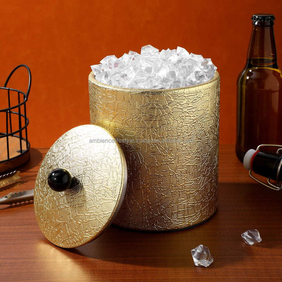 Seau à glace en métal design avec finition décorative et poignées robustes, parfait pour la décoration de maison de luxe et le refroidissement des boissons