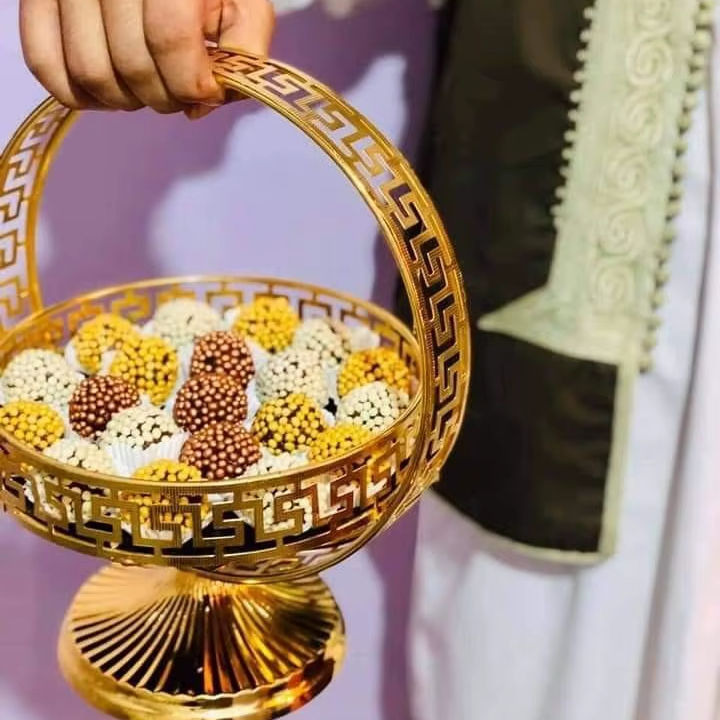 Plateau en métal de designer pour le Ramadan, idéal pour présenter des bougies parfumées, des lanternes et des accessoires de table sur le thème du Ramadan