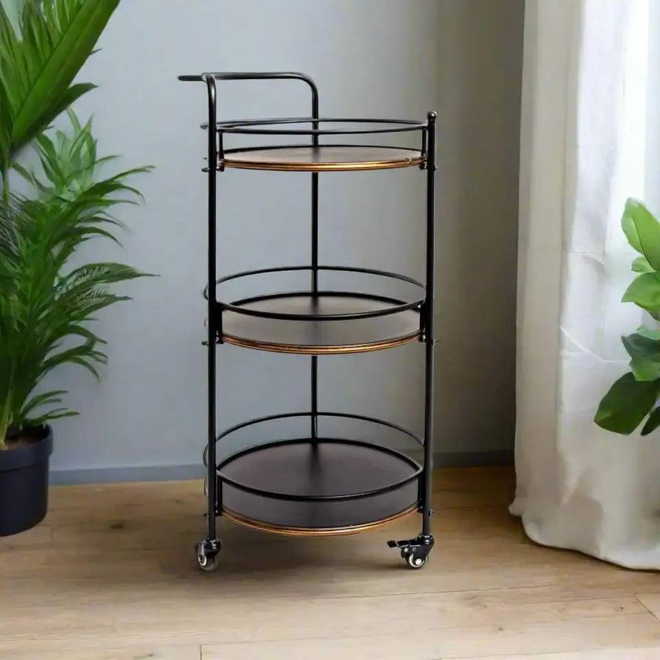 Chariot de service en métal design pour les maisons modernes avec une touche de luxe, parfait pour une présentation élégante dans la salle à manger