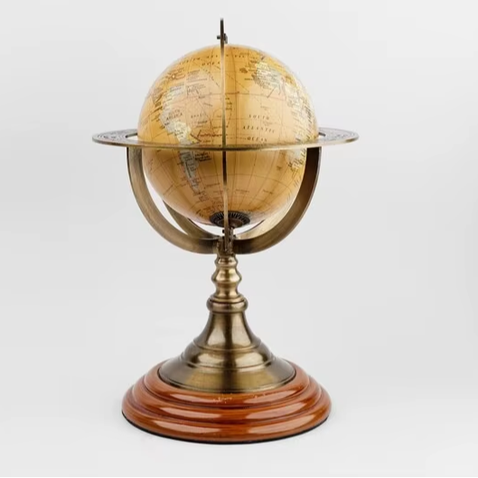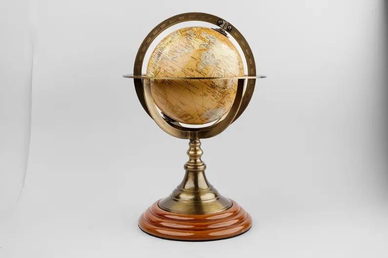 Globe terrestre rotatif en métal design avec marquages géographiques détaillés et base stable robuste pour la maison ou le bureau