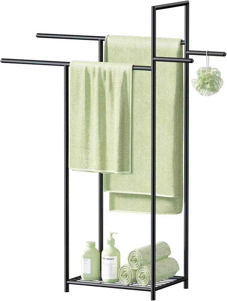 Porte-serviettes en métal design pour salle de bain, avec cadre décoratif, base stable et barres de séchage multi-niveaux