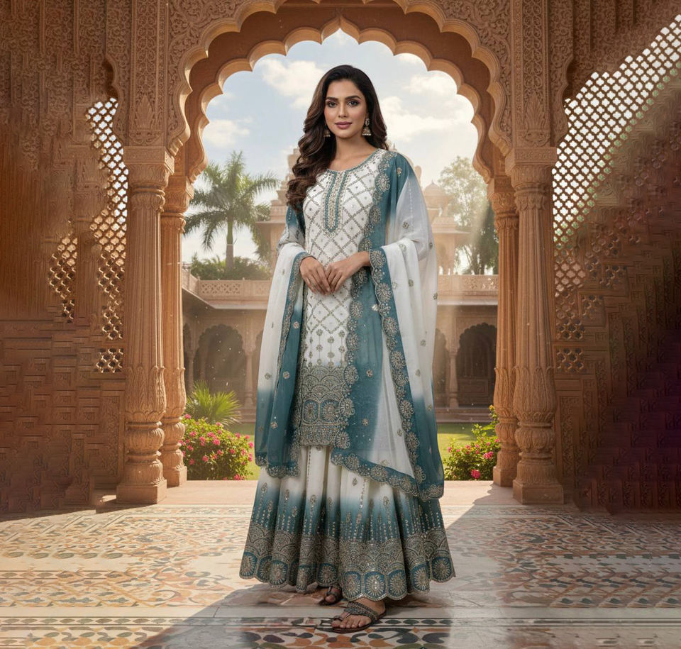 Robe ethnique moderne de créateur en tissu faux georgette épais, style Sharara indien pakistanais, pour mariage, soirée, coupe ajustée, réversible