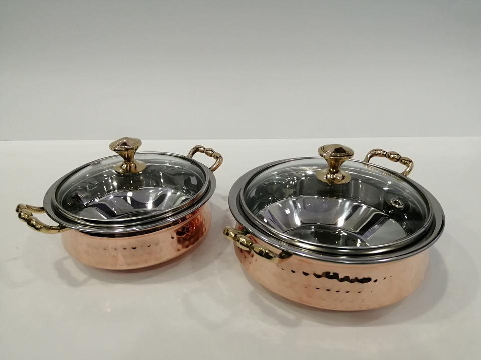 Designer Modern Premium High Quality Indian Plated Hand Small Crafted Copper & Steel Combination Servant Kadai Modern Fancy Dish