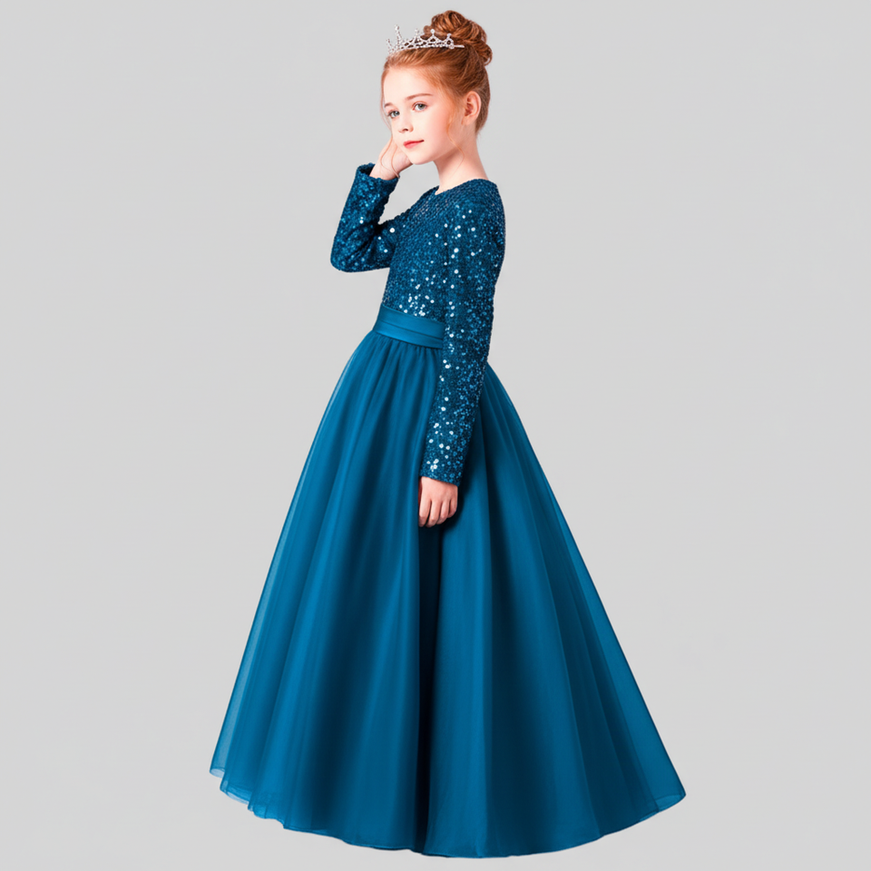 Robe de soirée princesse en velours brodé de sequins Morpichh pour filles, en tulle souple, pour événements, vente en gros OEM ODM