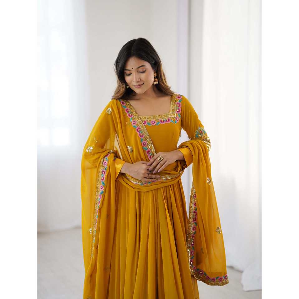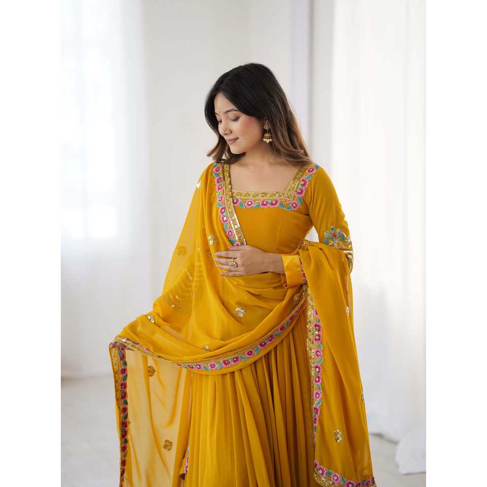 Robe de soirée Zeel Fashion jaune, design élégant, broderie multi-fils, travail de sequins, avec dupatta