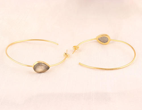 Boucles d'oreilles créoles en pierre de labradorite de feu naturel de concepteur grand cercle en laiton plaqué or boucles d'oreilles de mode géantes de Bali