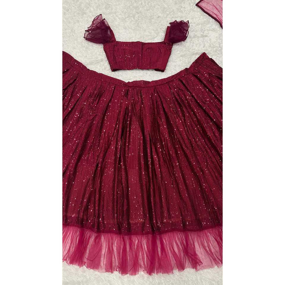 Lehenga Choli de créateur avec bordure en tulle à volants, vêtements de fête