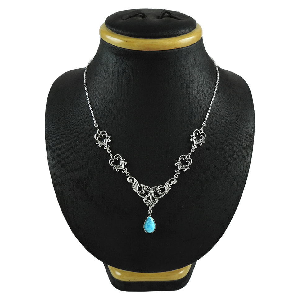 Designer New 2024 Natural Turquoise Gemstone 925 Sterling Silver Teardrop Shape Ethnic Necklace Bijoux faits à la main Prix de gros