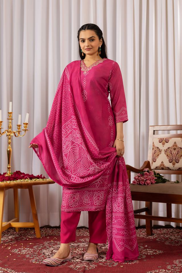Designer New Muslin Silk Kurta Pant and Dupatta Set with Heavy Handwork for Party Wear Special Collection