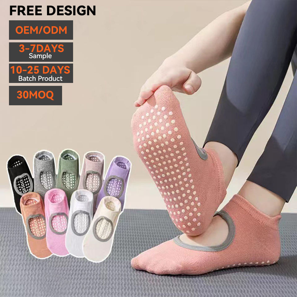 Chaussettes de yoga antidérapantes invisibles pour femmes, en coton doux avec grip en silicone, chaussettes de compression pour Pilates, logo personnalisé, chaussettes de sport pour l'entraînement