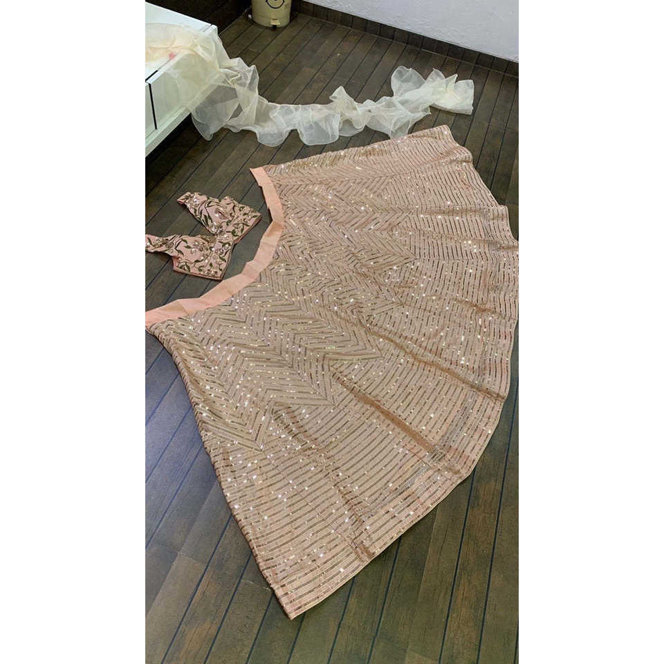 Robe de soirée Lehenga Choli en organza à volants de créateur
