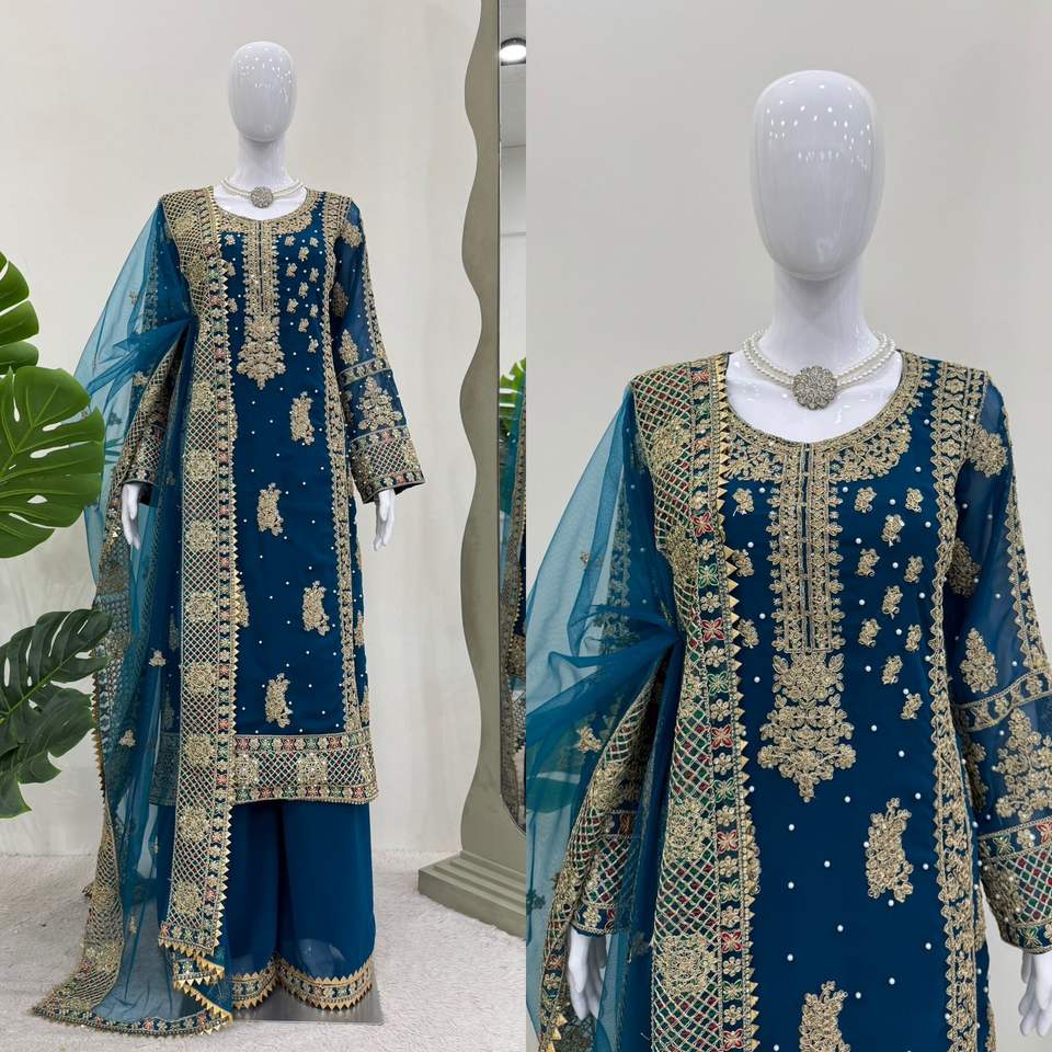 Costume Palazzo de créateur avec broderie lourde et travail de séquence, costume Palazzo indien pour femmes, tenue de soirée pour la vente à l'exportation