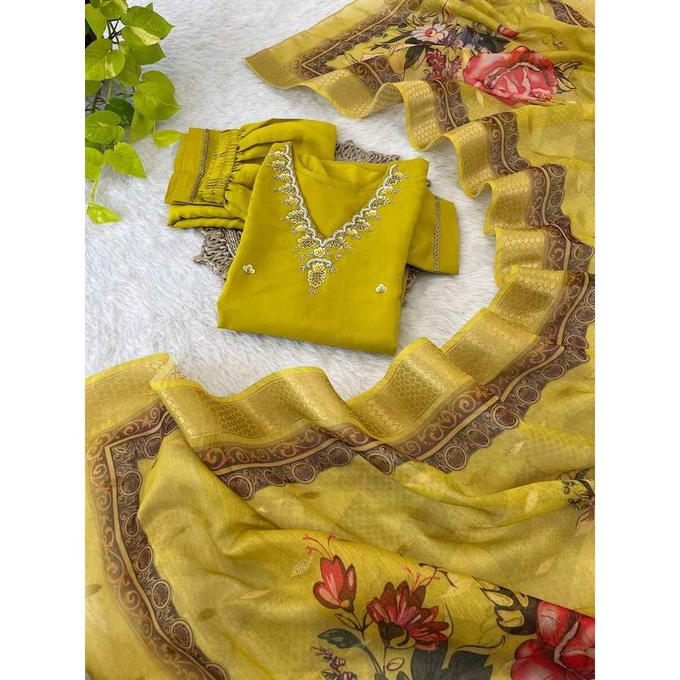 Pantalon Kurti en soie vert perroquet avec Dupatta Hand Work Vêtements pour femmes de style romain