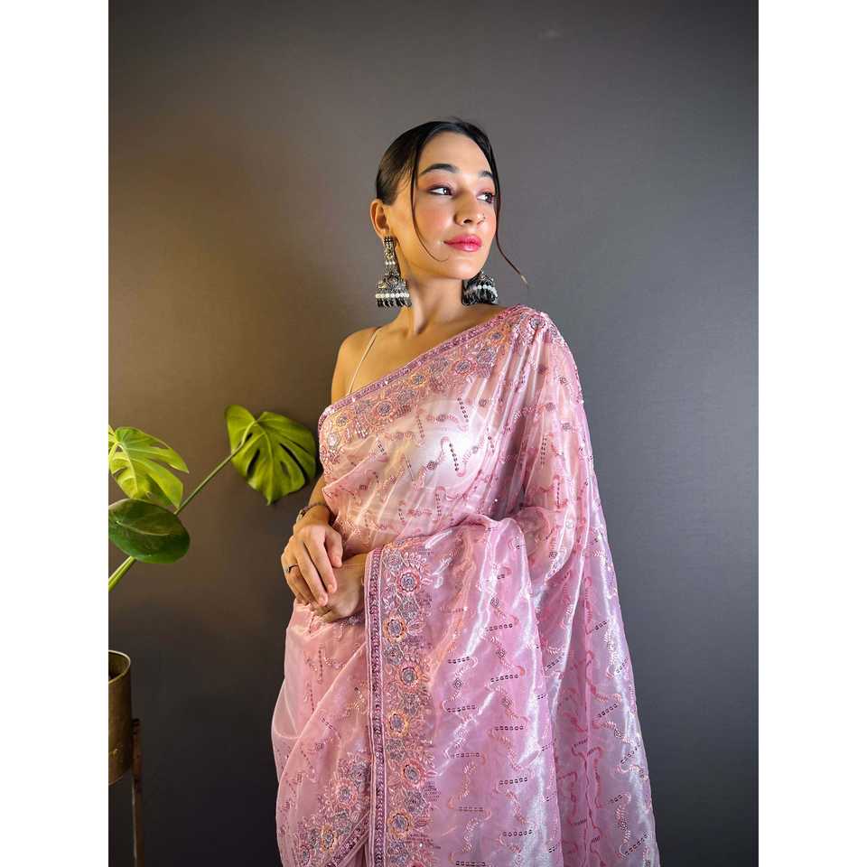 Saree de fête de créateur avec fil à paillettes brodées pour s'habiller